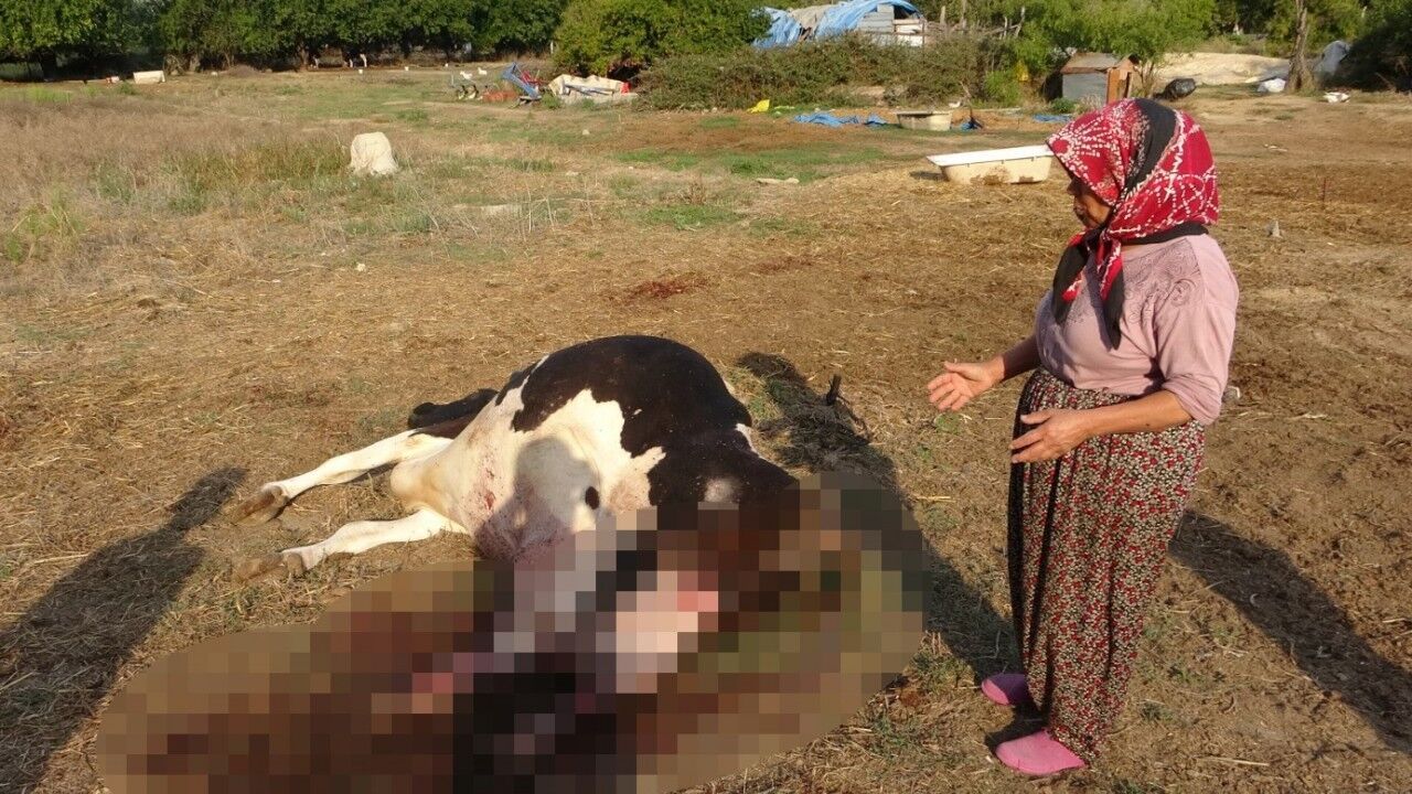 Gece köpek sesi duyduklarını belirten Şehri Yılmaz “En az 7-8 tane köpek vardı. Eşim kalkıp inekleri kontrol etti. Bir şey olmadığını söyleyerek geri geldi. Sabah saat 05.00 sıralarında ineği sağmak ve yemlemek için geldiğimde ineğin öldüğünü gördüm. Biz bu sokak köpeklerinden bıktık. İneğimiz köpeklerden kendisini kurtarabilmek için burada dönüp durmuş. İpin uzandığı yerler hep kan olmuş. Benim tek gelirim bu inekti. Diğer ineklerim süt vermiyor. Bu ineğin 2 aylık buzağısı da öksüz kaldı. Bu köpeklere çok sahip çıkılıyor. İneği, hayvanı hatta çocuğu parçalıyor ama bir sonuç yok. İnek ölüyor köpek haklı, geçenlerde kuzuyu parçaladı köpek haklı. Şimdi diğer ineklerimin başına aynı şeyin gelmesinden korkuyorum. Ahırımız var ama kapısı yok. Hayvanlar sıcaktan bunalmasın diye evimizin önüne bağlıyoruz. Bir başka ineğimin de memesini dişlemişler. Kantaron yağı sürdüm. Bu köpeklerle nasıl baş edeceğimizi bilemiyorum” diye konuştu.