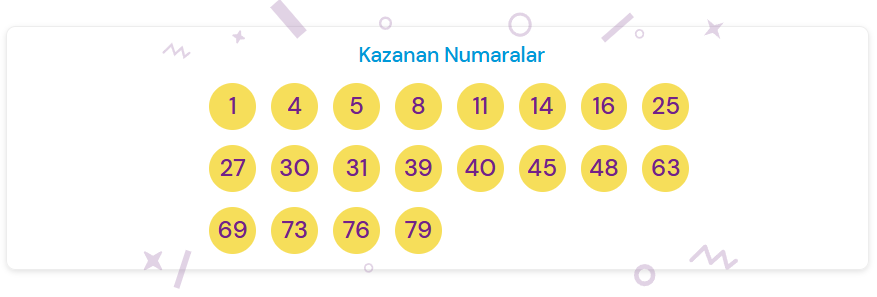 Günün ilk saatlerinde yapılan çekilişte belirlenen 20 şanslı numara şunlardır: