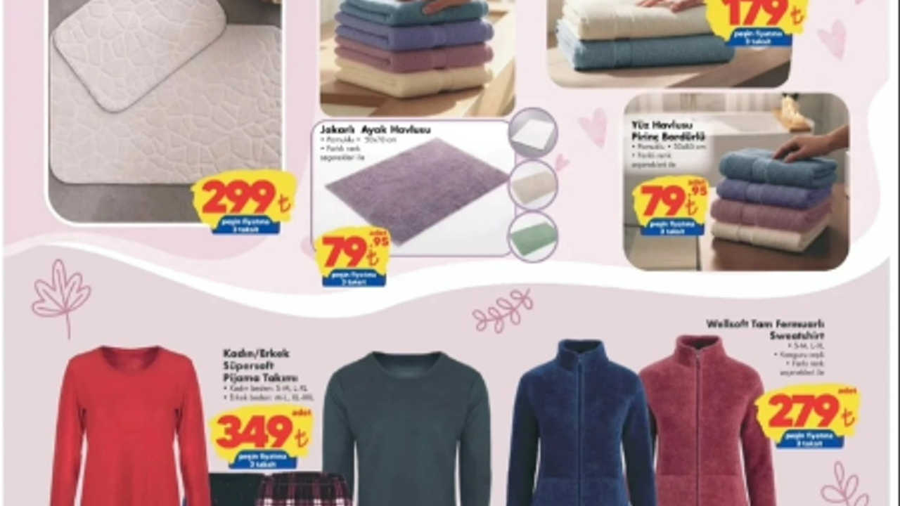 Evde konforu artıran ürünler bu haftaki Çarşamba fırsatlarının önemli bir bölümünü oluşturuyor. Tek kişilik ve çift kişilik kullanım için tercih edilebilen Emboss 21 Bonya Papas Seti 299 TL fiyatıyla satışa sunuluyor. Banyolar için olmazsa olmaz ürünlerden biri olan havlular da kampanyada yer alıyor. Jakarlı ayak havlusu 79 TL gibi uygun bir fiyatla dikkat çekerken, yüz havlusu (6’lı paket) yine 79 TL’den alıcı buluyor. Daha konforlu bir banyo deneyimi isteyenler için bornoz ise 179 TL fiyat etiketiyle öne çıkıyor. Bu ürünler, hem günlük kullanım hem de misafirler için ideal seçenekler sunuyor.