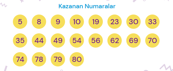 | Oynanan Numara | Bilinen Numara | Kazanan Kişi Sayısı | İkramiye Oranı |
