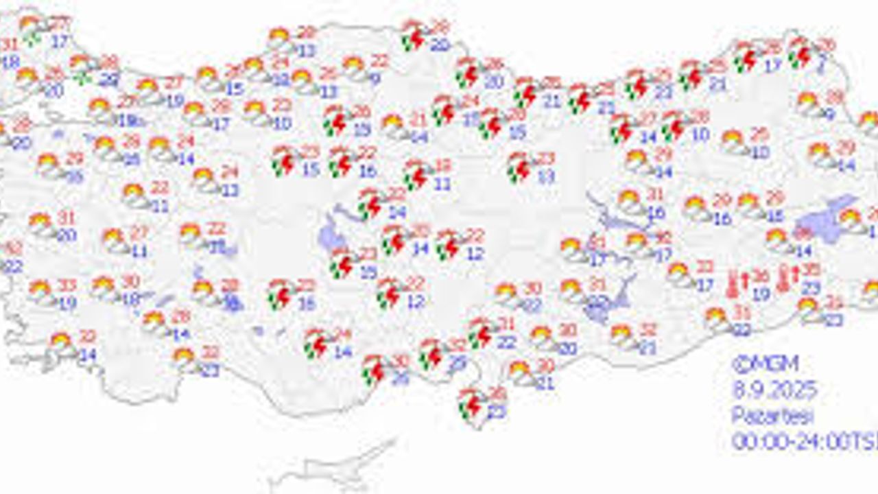 Eylül ayının ilk haftasını geride bırakırken hava koşulları Türkiye genelinde değişmeye başladı. Meteoroloji Genel Müdürlüğü (MGM) tarafından yapılan son değerlendirmelere göre, bugün birçok kentte gök gürültülü sağanak yağış etkili olacak. Özellikle 8 ilde kuvvetli yağış beklendiği için vatandaşların tedbirli olması gerekiyor.