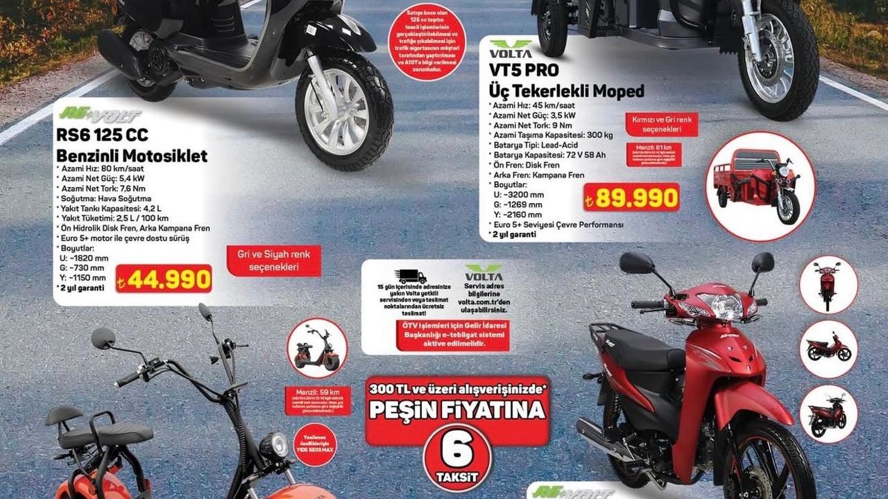 Katalogda yer alan en dikkat çekici ürünlerden biri ise Volta VTS PRO üç tekerlekli moped modeli. 89.990 TL fiyat etiketi bulunan araç, özellikle yük taşımak isteyen kullanıcılar için tasarlanmış. 45 km/saat azami hıza sahip olan model 3,5 kW motor gücü üretiyor.