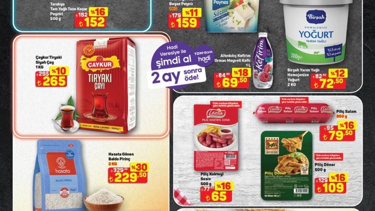 Yoğurt tarafında ise Birşah Yarım Yağlı Homojenize Yoğurt 2 kg %12 indirimle 72,50 TL’den satışta. Kahvaltıyı tamamlayan bir diğer ürün Çaykur Tiryaki Siyah Çay 1 kg ise %10 indirimle 265 TL olarak belirlenmiş.