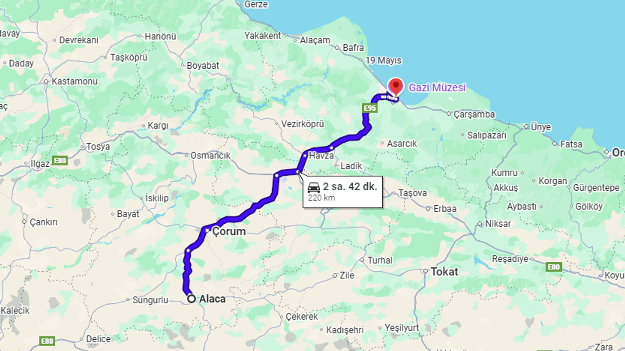 Alaca Samsun Arası Kaç Km Ve Tahmini Varış Süreleri