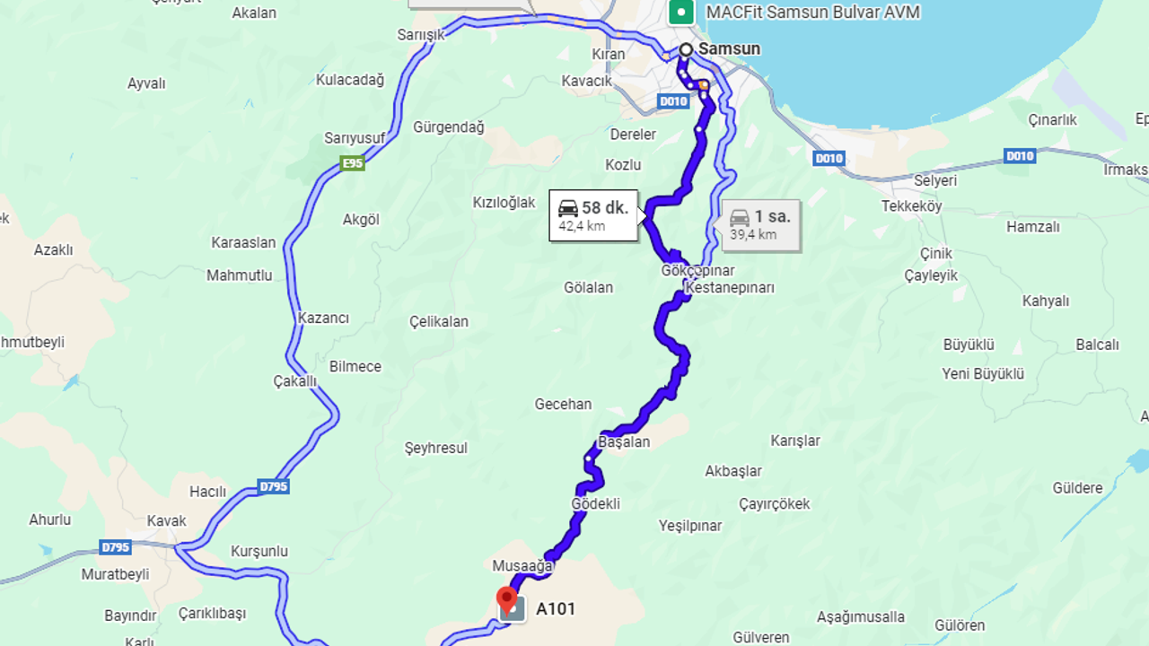 Alternatif yollar bulunsa da en güvenli ve bakımlı olan hat Kavak üzerinden sağlanan bağlantıdır. Şehir merkezinden düzenlenen düzenli minibüs seferleri, ilçeye ulaşımı kolaylaştıran en yaygın yöntemdir. Bu araçlar genellikle belirlenen terminal noktalarından hareket ederek gün boyu karşılıklı seferler düzenlemektedir.
