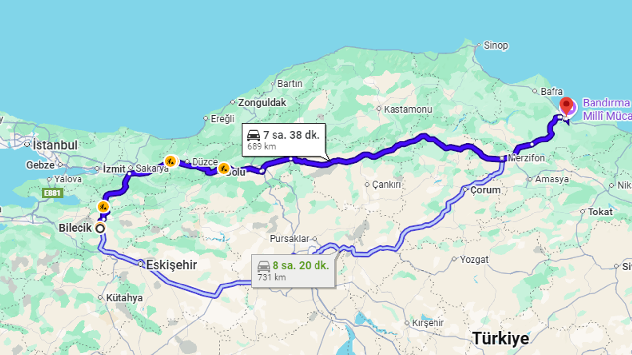 - Bilecik ile Samsun arasındaki toplam karayolu mesafesi yaklaşık 600 kilometre olarak hesaplanmaktadır.