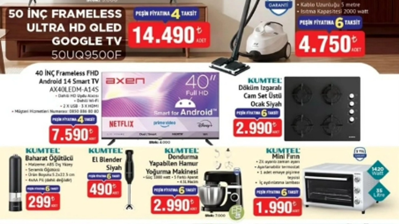 Ayrıca Kumtel Stand Mikser 2.990 TL, Kumtel Blender Seti ise 490 TL fiyatla raflarda yer alıyor. Günlük mutfak işlerini kolaylaştıran bu ürünler, özellikle evde vakit geçirmeyi sevenler için avantaj sağlıyor.