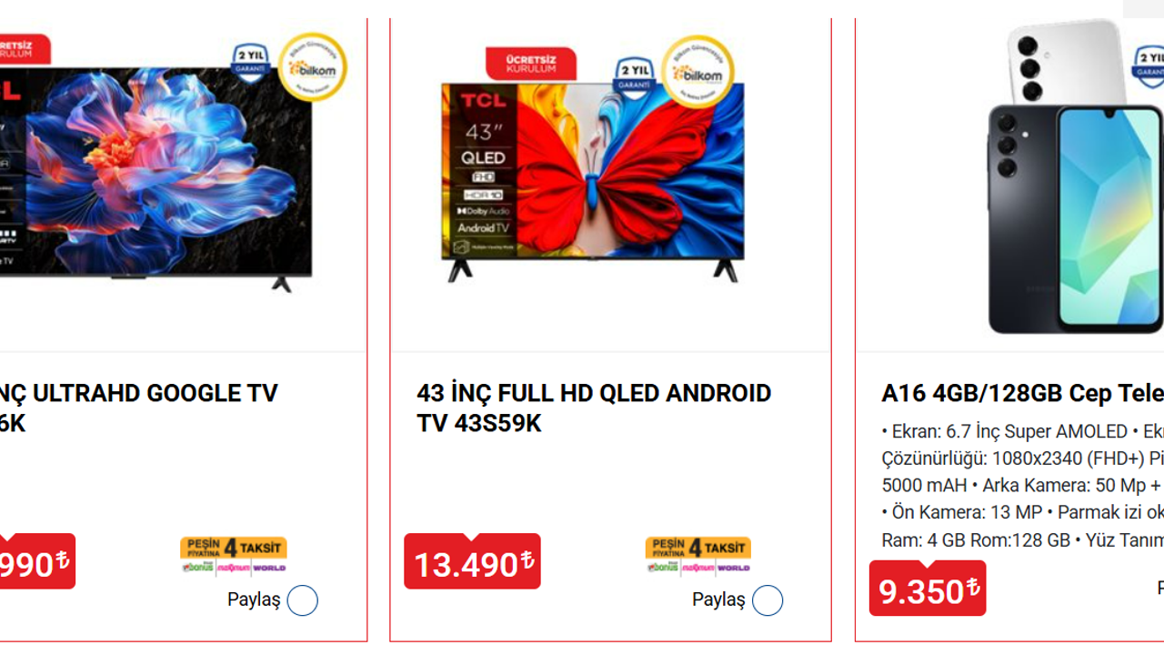 BİM aktüel ürünlerinde olduğu gibi bu teknolojik ürünlerin de sınırlı stoklarla mağazalarda yer alması bekleniyor. Büyük ekran televizyon ve uygun fiyatlı akıllı telefon arayanlar için bu hafta dikkat çekici fırsatlar sunuluyor. Özellikle fiyat-performans odaklı alışveriş yapmak isteyen tüketicilerin kampanya tarihlerini kaçırmaması öneriliyor.