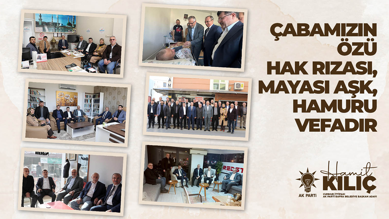 Samimi hizmet anlayışının özünde hak rızası olduğunu hatırlatan Bafra Belediye Başkanı ve Cumhur İttifakı AK Parti Bafra Belediye Başkan Adayı Hamit Kılıç, “Makamlar, mevkiler değişse bile bizim için esas olan gönüllerin birlikteliğidir. Bir bayrak yarışı görev sürelerinde kutsal hizmet bayrağını başarı ile taşıyan değerli büyüklerimiz, arkadaşlarımız, kardeşlerimizi AK Parti Milletvekilimiz Orhan Kırcalı, AK Parti İlçe Başkanımız İbrahim Semiz ve MHP İlçe Başkanımız Emin Usta ile ziyaret ederek hasbihal ettik. Benzer ziyaretlerimiz devam edecek. Hz. Mevlana’nın “Her yerde olmak gibi bir duan varsa gönüllere gir. Çünkü sevenler, sevdiklerini gönüllerinde taşır” sözlerinde olduğu gibi bizler de sevdiklerimizi gönlümüzde taşıyoruz. Cumhur İttifakı unsurları olarak hepimizin çabasının özünde hak rızası, mayasında aşk, hamurunda ise vefa var. Rabbim muhabbetimizi baki, birlik ve beraberliğimizi daim eylesin” dedi.
