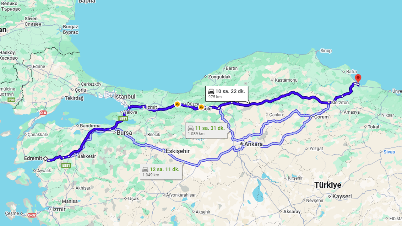 Edremit ile Samsun arasındaki mesafe, tercih edilen ana arterlere ve sürücülerin mola verme alışkanlıklarına göre değişiklik gösterebilmektedir. Edremit Samsun arası kaç km sorusuna dair yapılan resmi karayolu ölçümleri şu verileri ortaya koymaktadır: