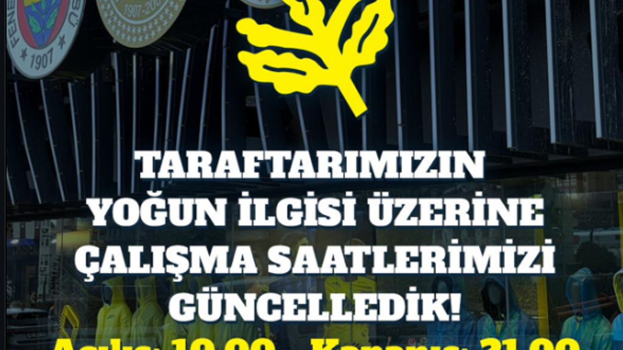 Paylaşılan görselde Fenerbahçe armasının ön planda olduğu bir Fenerium mağazası vitrini yer alıyor. Görsel üzerindeki “Taraftarımızın yoğun ilgisi üzerine çalışma saatlerimizi güncelledik” ifadesi alınan kararın doğrudan taraftar desteğiyle bağlantılı olduğunu net şekilde ortaya koyuyor. Mağaza vitrininde sergilenen yeni sezon ürünleri ve forma çeşitleri de ilginin neden bu kadar yüksek olduğunu gözler önüne seriyor.