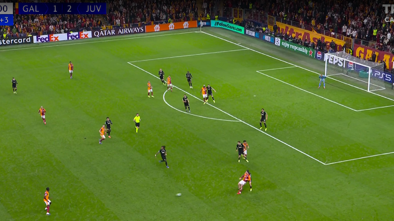 İlk yarıda iki takım da tempolu bir oyun ortaya koydu. Galatasaray kanat organizasyonlarıyla etkili olmaya çalışırken Juventus kontrollü pas oyunuyla savunma arkasına sarkmayı başardı. Sara’nın golü sarı-kırmızılılara moral verse de Koopmeiners’in liderliği Juventus’u öne taşıdı.