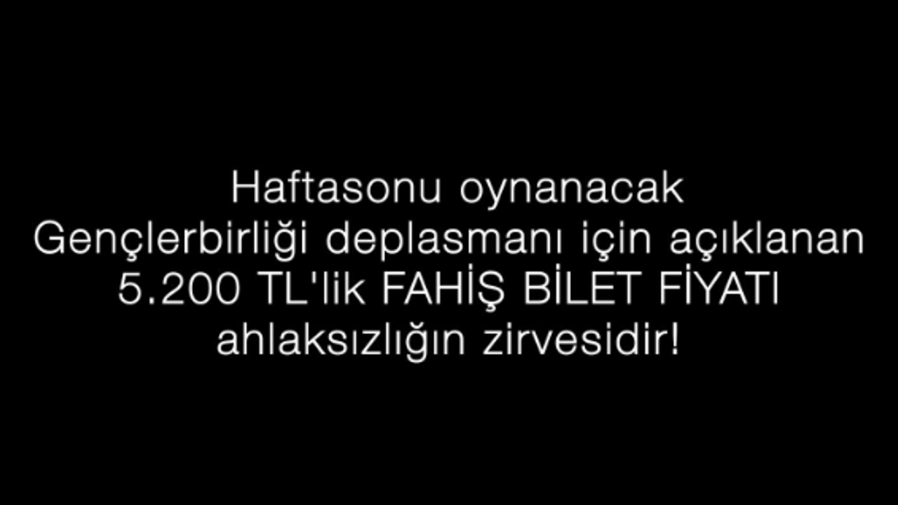 Ultraaslan tarafından yapılan açıklamada “Hafta sonu oynanacak Gençlerbirliği deplasmanı için açıklanan 5.200 TL’lik FAHİŞ BİLET FİYATI ahlaksızlığın zirvesidir!” ifadeleri yer aldı. Taraftar grubu bu durumun futbolun ruhuna zarar verdiğini savundu.
