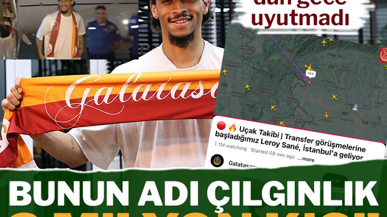 Sarı kırmızılı taraftarlar o andan itibaren bir çılgınlık başlattı. Galatasaray'ın paylaştığı Sane'nin uçak takibi canlı yayınını 2.3 milyondan fazla kişi canlı izledi.