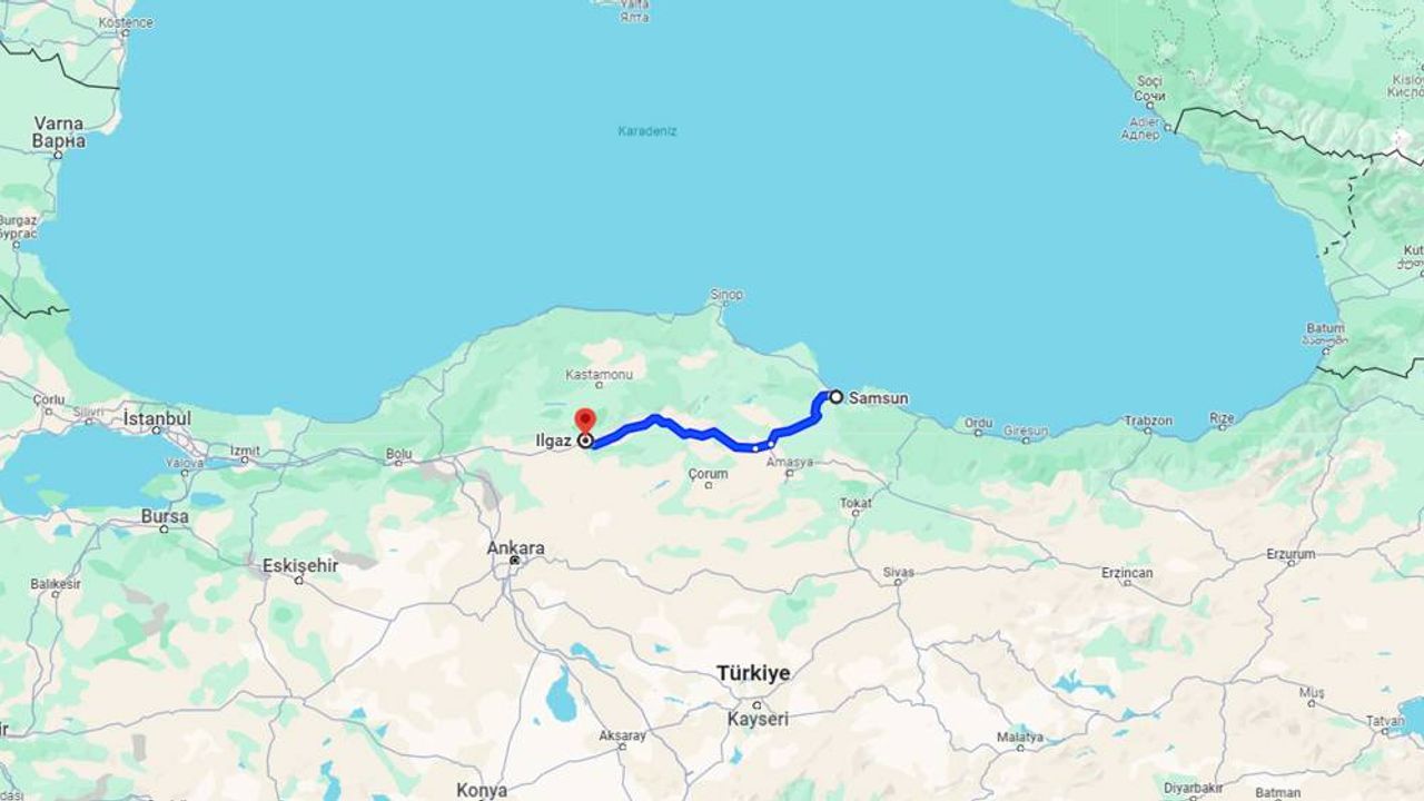 - Ilgaz ile Samsun arasındaki toplam karayolu uzaklığı yaklaşık 250 kilometredir.