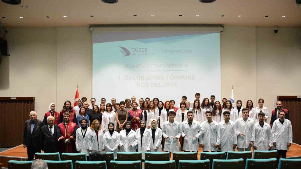Düzce Üniversitesi Eczacılık Fakültesi 2023-2024 Eğitim-Öğretim Yılı birinci önlük giyme töreninde eczacılık bölümünü kazanan öğrenciler, beyaz önlüklerini büyük bir coşku ve heyecanla giydiler. Eczacılık Fakültesi Dekanı Prof. Dr. Ufuk Koca Çalışkan ilk toplum eczanesinin Bağdat’ta açıldığını söyledi.