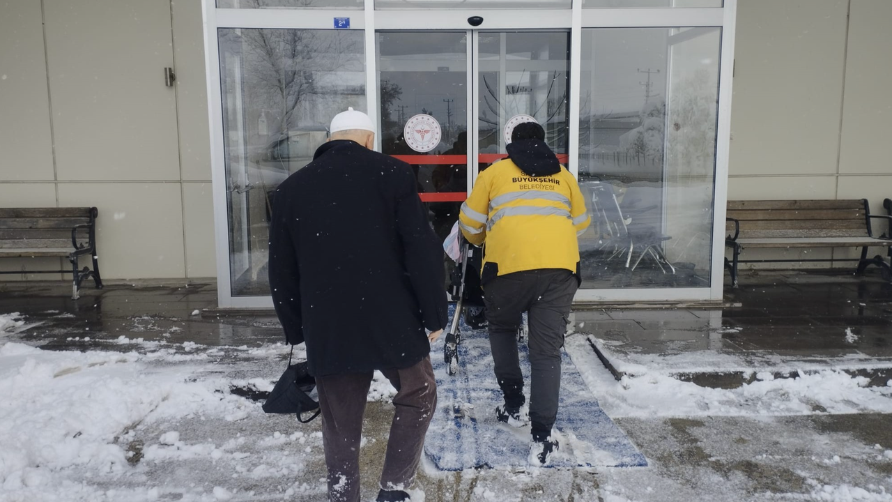 Diyaliz hastası olan ve yoğun kar yağışı nedeniyle hastaneye gidemeyen Sezer, o sırada mahallede yol açma çalışması yapan Büyükşehir Belediyesi ekiplerinden yardım istedi. Ekipler arazi aracı ile yaşlı kadını kısa sürede hastaneye ulaştırdı.