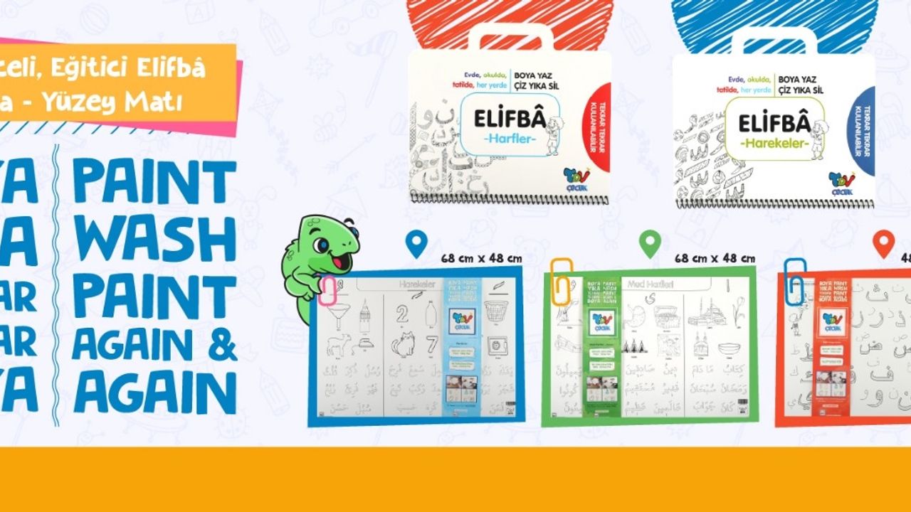 Yıkanabilir elif ba harfleri bulunan orta boy yüzey matı ise eğlenceli figürler eşliğinde çocukların evlerinde nitelikli zaman geçirmesini hedefliyor.