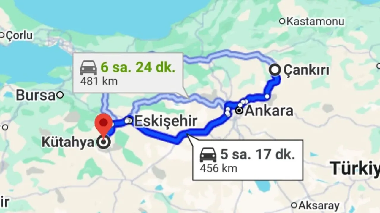 Samsun Kütahya Güzergâhında Karayolu Mesafesi Ve Süresi