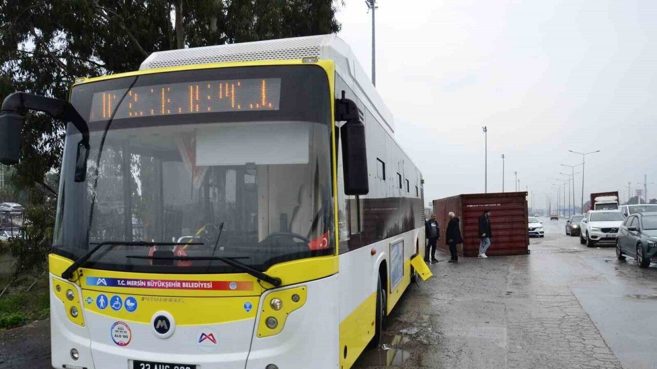 Mersin’de kavşaktan dönen tırın üzerinden düşen konteyner belediye otobüsüne çarptı.