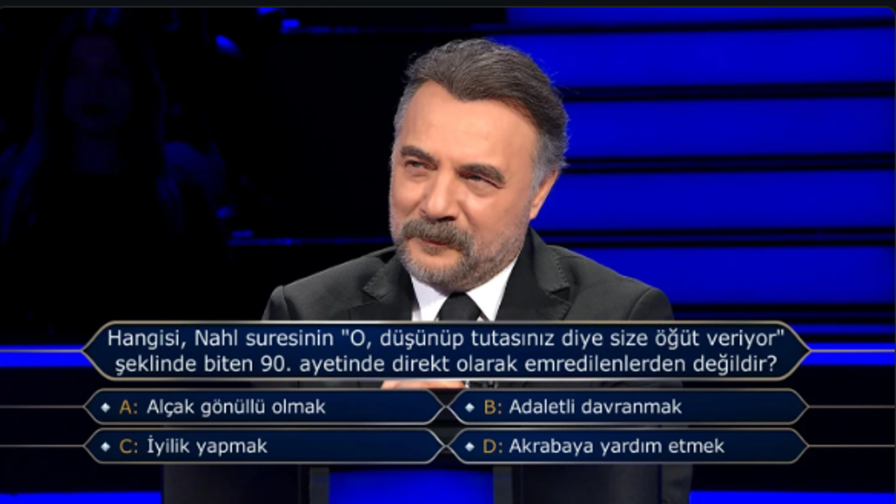 “Kim Milyoner Olmak İster?” yarışması zaman zaman kültür, tarih ve dini içerikli sorularla izleyicileri hem eğlendirmeye hem de bilgilendirmeye devam ediyor. Bu soru da uzun süre hafızalarda kalacak gibi görünüyor. Sizce doğru cevap hangi şık?