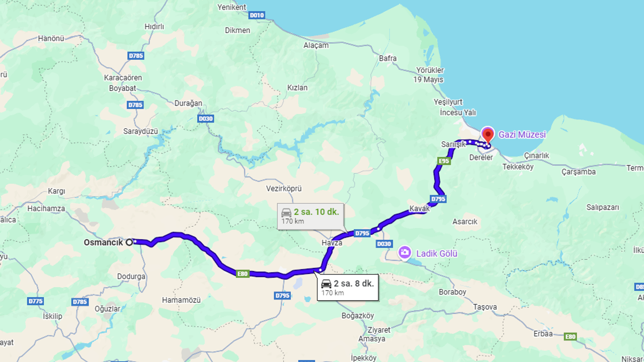 - Güzergah boyunca Merzifon ve Havza gibi önemli geçiş noktalarından geçilerek sahil şeridine ulaşılmaktadır.
