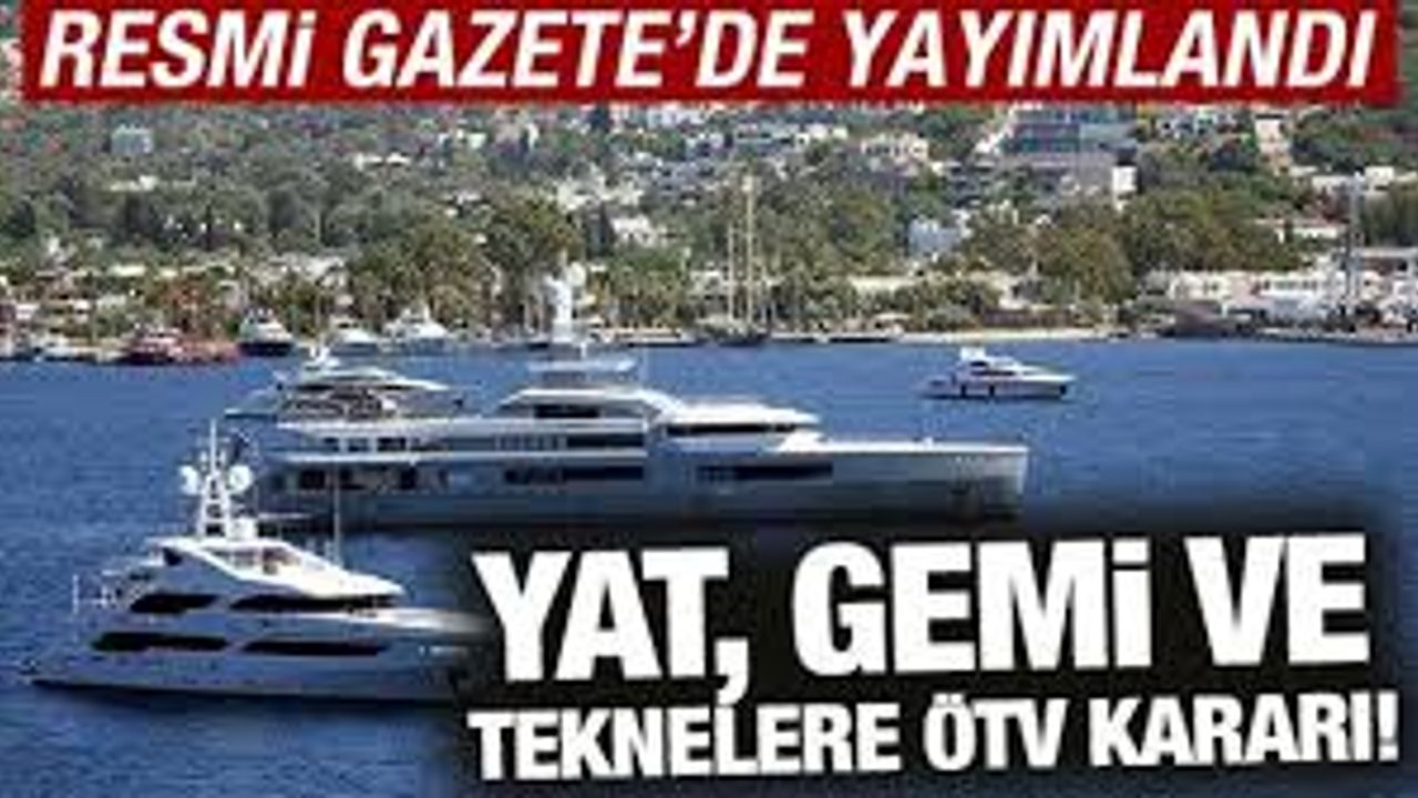 6 Eylül 2025 tarihinde Resmî Gazete’de yayımlanan Cumhurbaşkanı Kararı ile yat, tekne ve gezinti gemilerinde Özel Tüketim Vergisi (ÖTV) oranı %8 olarak belirlendi. Daha önce bu taşıtlarda sıfır olan vergi oranı, yeni düzenlemeyle artık uygulanacak. Cumhurbaşkanı Recep Tayyip Erdoğan’ın imzasıyla yürürlüğe giren karar, Hazine ve Maliye Bakanlığı tarafından uygulanacak.