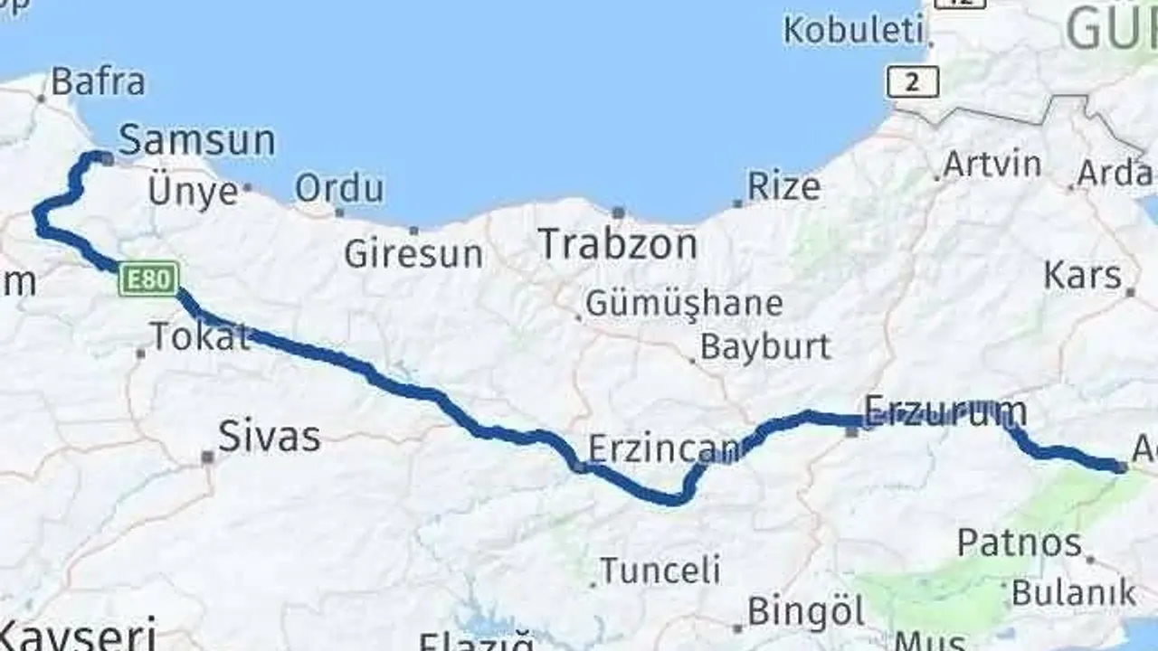 Orta Karadeniz'in merkezi konumundaki Samsun ile Doğu Anadolu'nun zirvesi Ağrı arasındaki ulaşım koridoru, sürücüler ve yolcular için farklı coğrafi manzaraları barındıran uzun bir serüvendir.