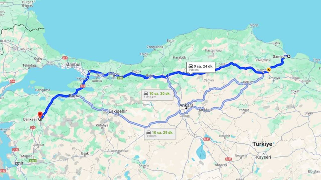 Samsun Ve Balıkesir Arası Mesafe Ve Süre Bilgileri