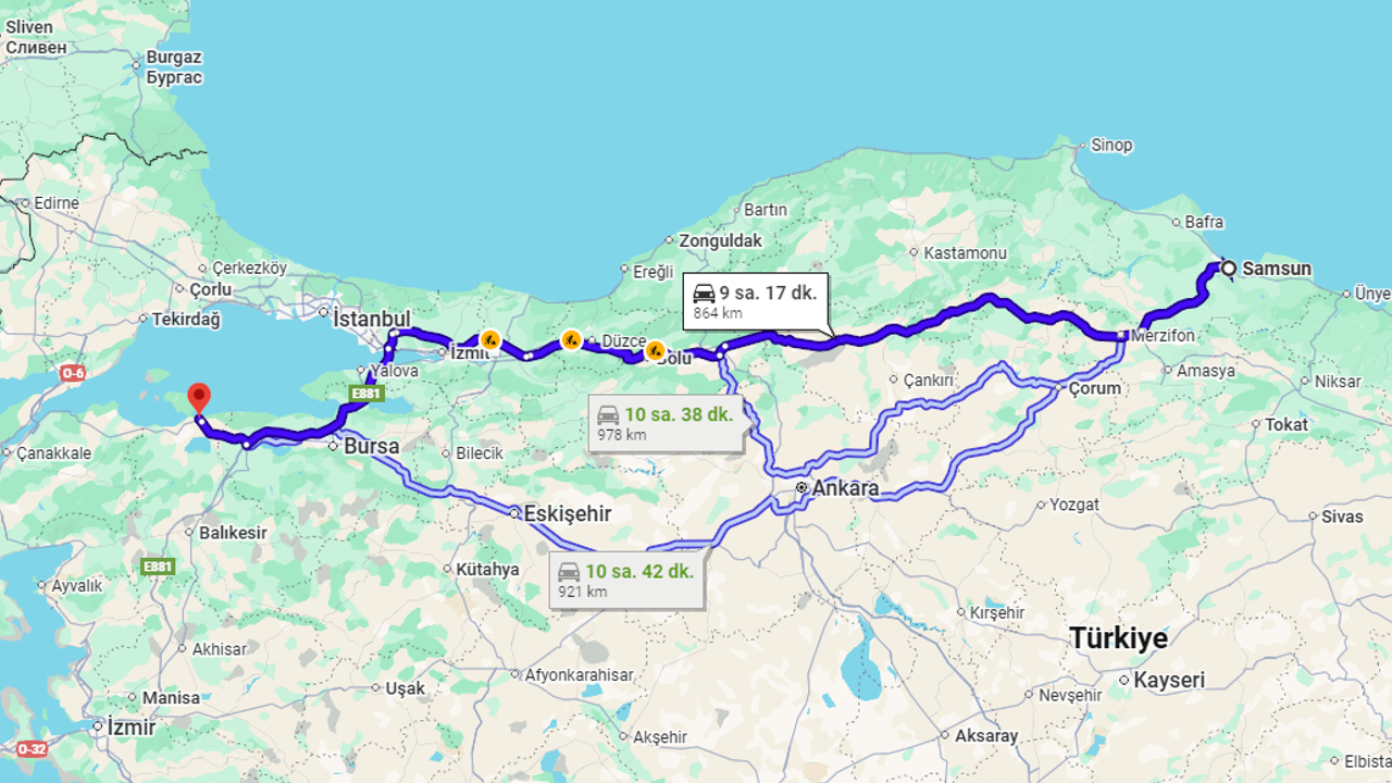 Ülkemizin iki önemli sahil kentini birbirine bağlayan bu rota, hem lojistik taşımacılık hem de bireysel seyahatler için hayati bir önem taşımaktadır. Kuzey Anadolu hattı boyunca ilerleyen bu yolculuk, Karadeniz’in yeşilliğinden Marmara’nın dinamik atmosferine uzanan geniş bir coğrafi kesiti kapsamaktadır. Yolcular için seyahat planlaması yaparken mesafenin yanı sıra tercih edilen ulaşım aracının sağladığı süre avantajlarını bilmek büyük kolaylık sağlamaktadır.