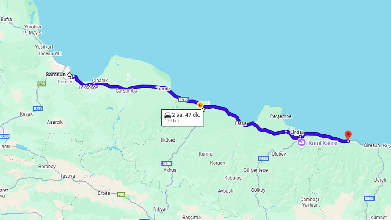Modern otoyol standartlarına sahip olan bu hat, Samsun’un geniş sahil caddelerinden başlayıp fındık bahçeleriyle ünlü Giresun topraklarına kadar uzanmaktadır. Yol boyunca denizin mavisiyle dağların yeşili arasındaki bu ince şeritte ilerlemek, yolculuğu sadece bir ulaşım değil, aynı zamanda görsel bir dinlenme sürecine dönüştürmektedir. Seyahat süresini etkileyen trafik yoğunluğu ve hava muhalefeti gibi değişkenler, güvenli bir varış için her zaman göz önünde bulundurulmalıdır.