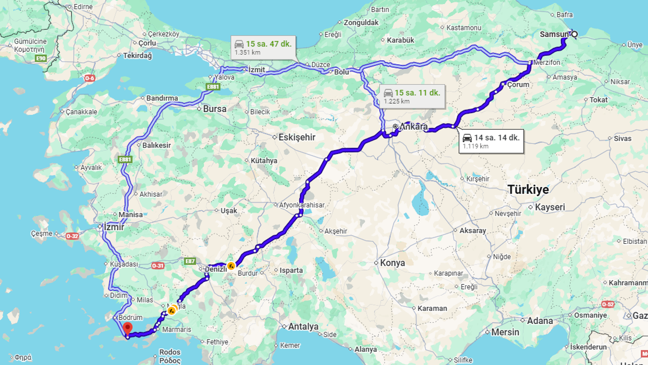 Samsun’dan Datça’ya giderken genellikle Ankara ve Afyonkarahisar üzerinden geçen rota en çok tercih edilen seçenektir. Samsun Datça arası kaç km sorusunun yanıtı olan bu bin kilometreyi aşkın yolculukta takip edebileceğiniz temel hat şöyledir: