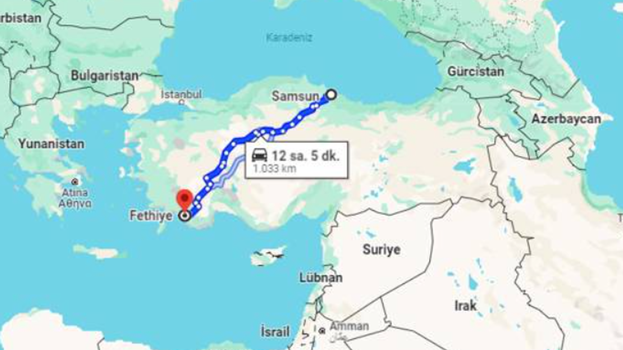 Samsun Ve Fethiye Arasındaki Karayolu Mesafesi