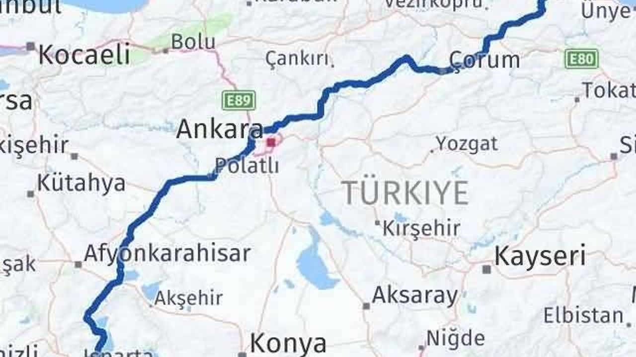 Samsun ve Isparta arasındaki fiziksel uzaklık, karayolu güzergahı ve düz hat (kuş uçuşu) olarak farklılık göstermektedir: