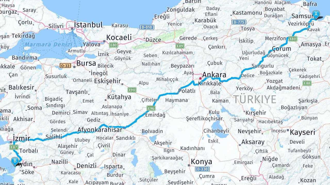 Ülkemizin kuzey ucundaki liman kenti Samsun ile Ege'nin turizm başkentlerinden biri olan Aydın'ın Kuşadası ilçesi arasındaki yolculuk, Anadolu coğrafyasını boydan boya geçmeyi gerektirir.