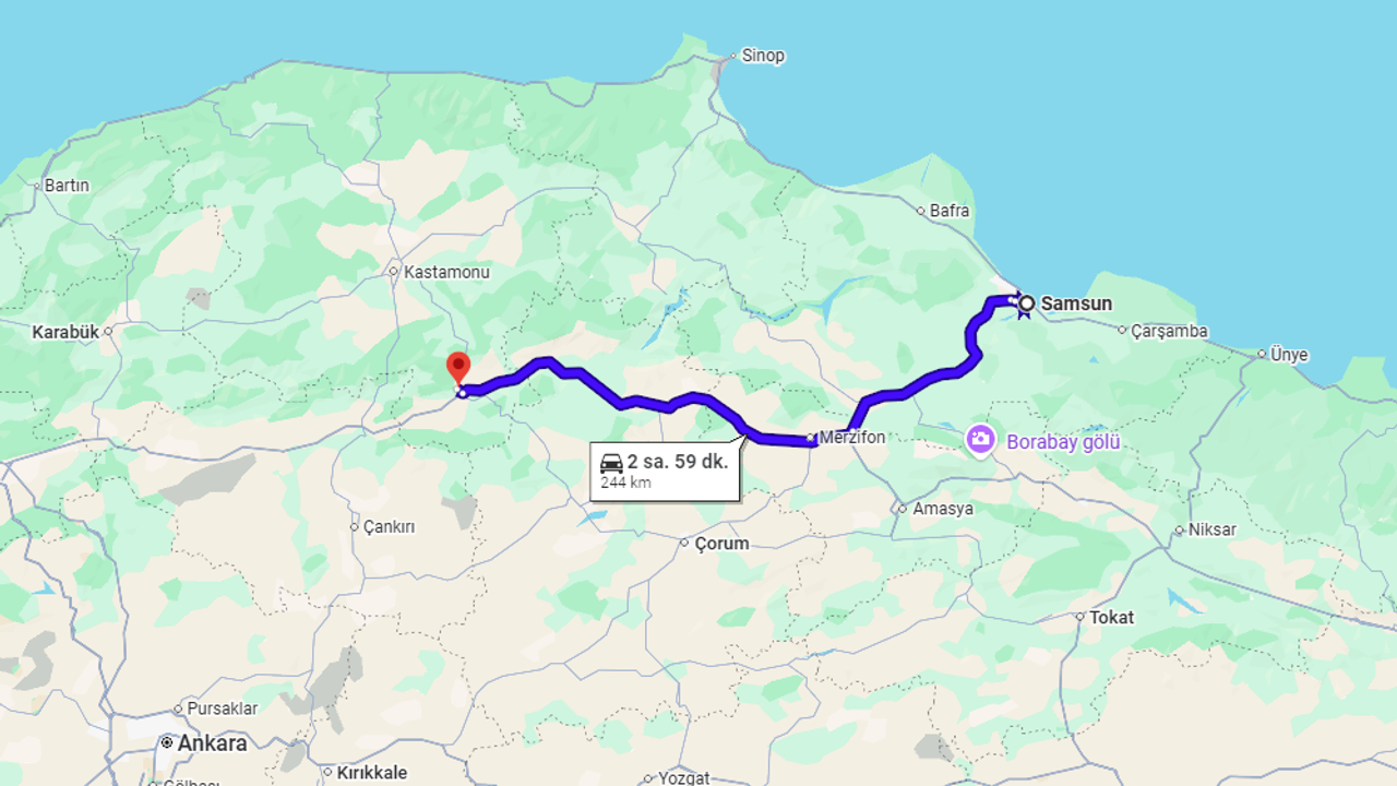 - Güzergah boyunca Kavak, Havza ve Osmancık gibi önemli geçiş noktalarından ilerlenerek hedefe ulaşılmaktadır.
