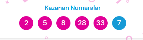 Gecenin çekilişinde küreden çıkan ve talihlileri belirleyen numaralar şunlar oldu: 2 – 5 – 8 – 28 – 33 + 7