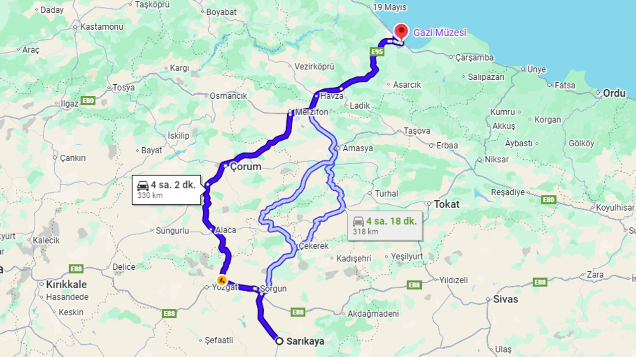 Kara Yolu İle Sarıkaya Samsun Arası Kaç Km Ve Tahmini Varış Süreleri
