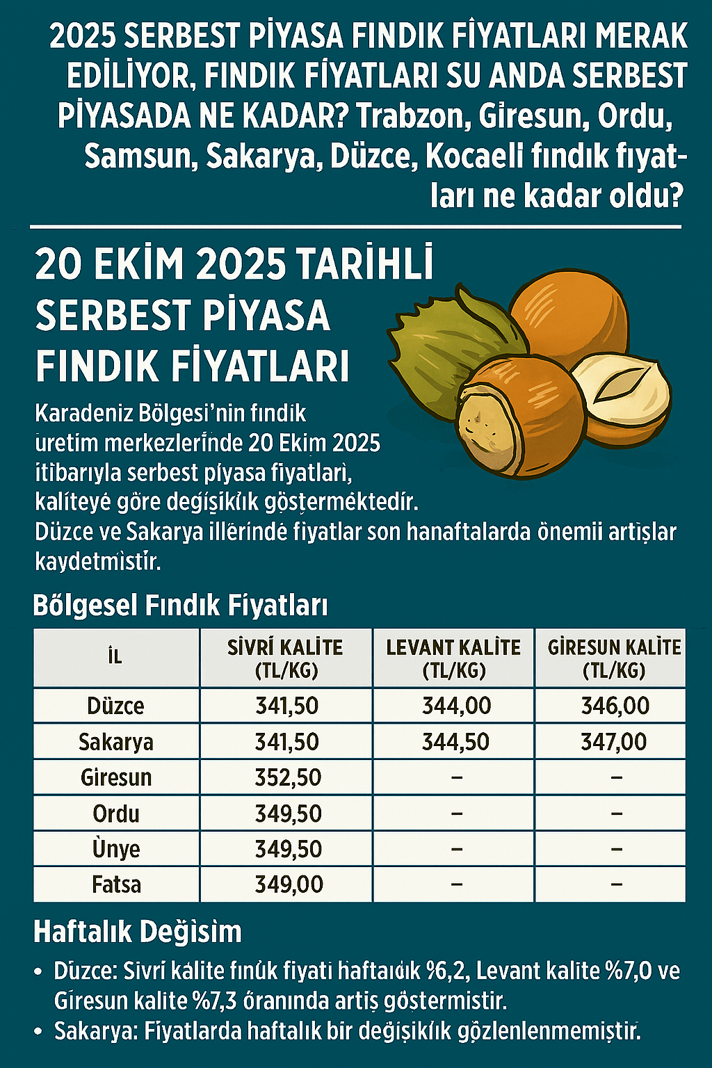 📌habergazetesi.com.tr olarak fındık üreticilerini ve yatırımcıları yakından ilgilendiren fiyat gelişmelerini takip etmeye devam ediyoruz. Haftalık güncellemeler ve bölgesel analizler için bizi izlemeye devam edin.