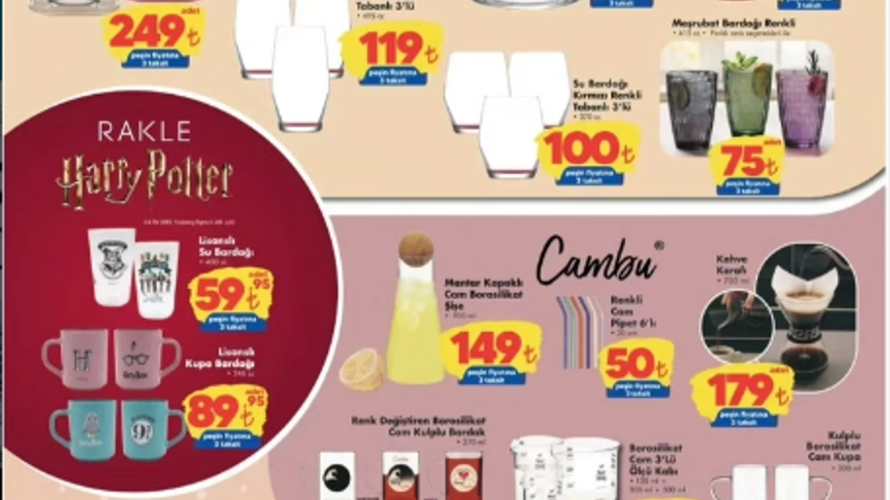 ŞOK’un bu haftaki kataloğunda lisanslı ürünler de dikkat çekiyor. Özellikle koleksiyon meraklılarının ilgisini çekecek Rakle Harry Potter lisanslı su bardağı 59 TL, lisanslı kupa bardak ise 89 TL’den satışa sunuluyor. Çocuklar için hazırlanan My Little Pony pipetli matara ise 119 TL fiyatıyla öne çıkıyor.