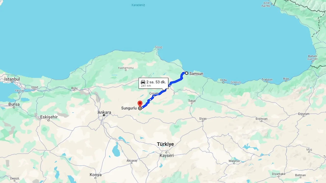 Sungurlu Ve Samsun Arasındaki Detaylı Mesafe Bilgileri