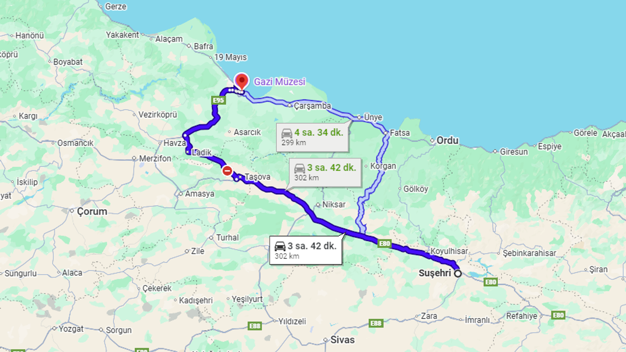 Suşehri ile Samsun arasındaki mesafe, tercih edilen aracın türüne ve izlenen güzergahın trafik yoğunluğuna bağlı olarak değişkenlik gösterebilmektedir. Suşehri Samsun arası kaç km sorusuna yönelik yapılan ölçümler doğrultusunda şu veriler ön plana çıkmaktadır:
