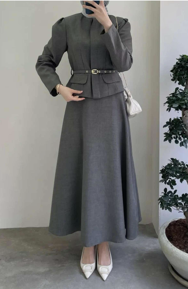 ● Düz kesim bir tesettür etek, basic bir üst ile birlikte kullanılabilir