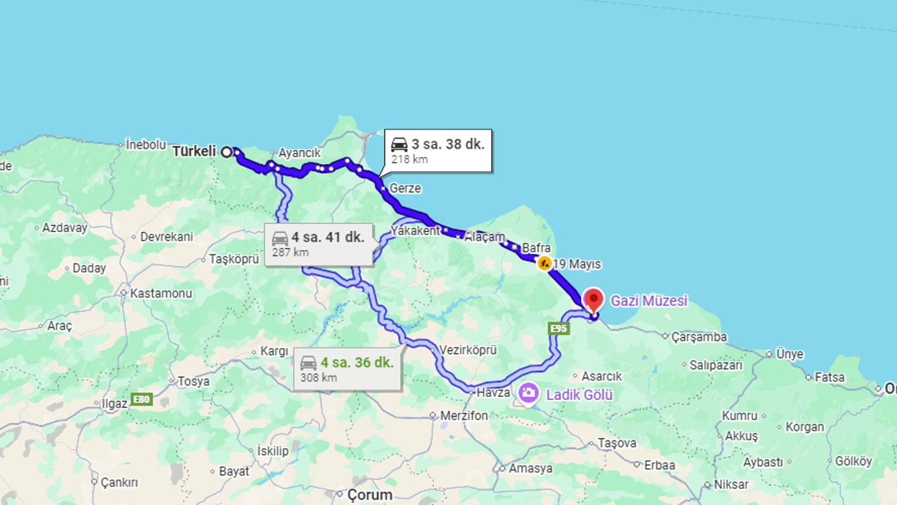 Kara Yolu Ve Özel Araç İle Türkeli Samsun Arası Kaç Km