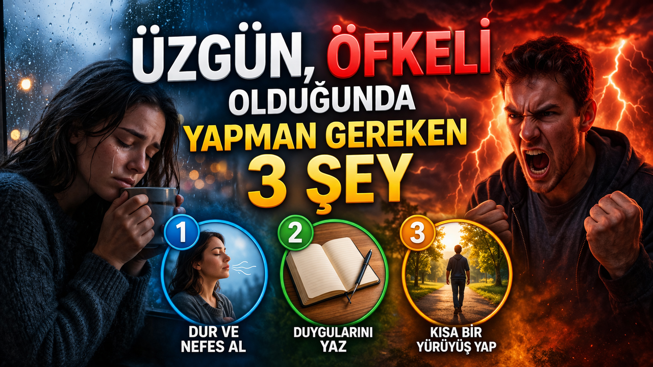Öfke ve üzüntü anlarında beden genellikle hızlı tepki verir kalp atışı yükselir, nefes düzensizleşir ve kaslar gerilir. Bu durumda yapılacak en etkili şeylerden biri kontrollü nefes alışverişidir. Derin nefes egzersizleri beynin sakinleşme merkezini aktif hâle getirir ve kısa süre içinde daha dengeli hissetmeye yardımcı olur. Özellikle burundan yavaşça nefes alıp ağızdan bırakmak vücuttaki gerginliği önemli ölçüde azaltır. Günde birkaç dakika bile bu teknikleri uygulamak duygusal kontrol becerisini güçlendirir.
